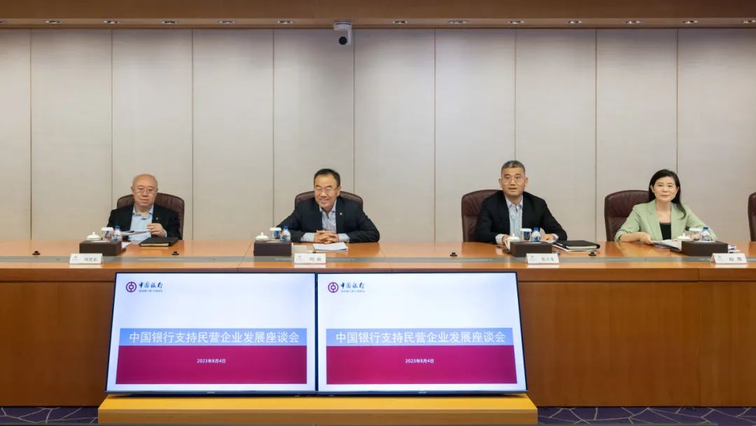 8月4日,中国银行在北京召开支持民营企业发展座谈会,着力为民营企业办实事、解难题。中国银行行长刘金主持座谈会,副行长张小东、风险总监刘坚东、业务管理总监赵蓉,以及来自农牧业、新能源、电子信息、先进制造、民生消费、物流等行业领域的10家民营企业代表参会。