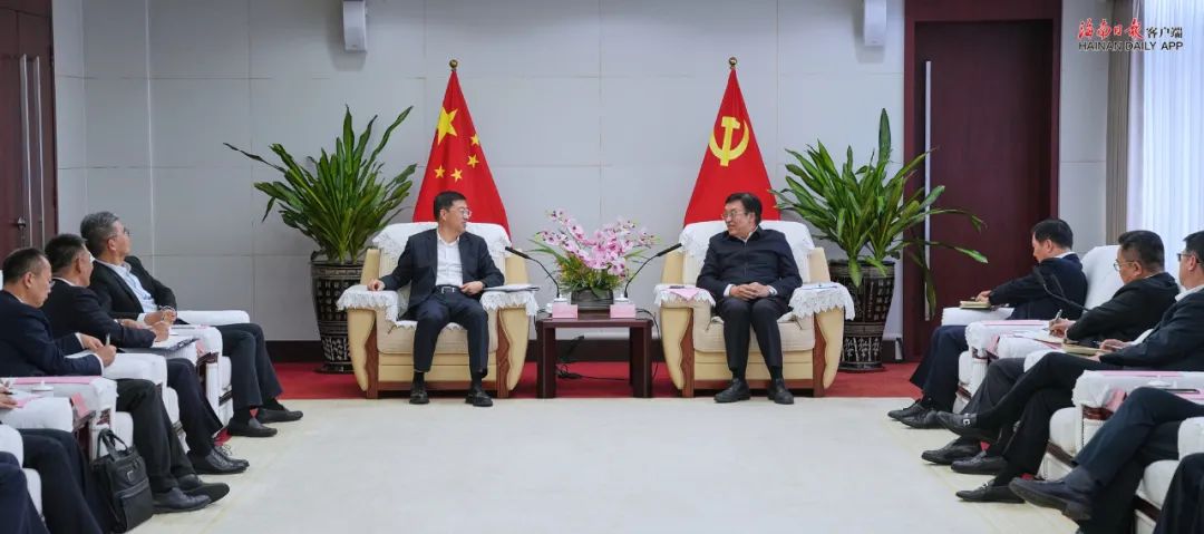 签约仪式前,冯飞、刘小明会见葛海蛟一行,双方围绕在相关领域深化合作进行交流。