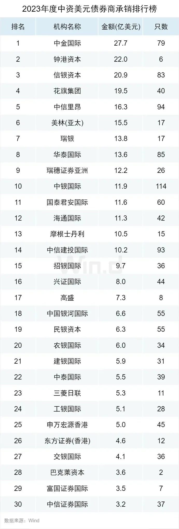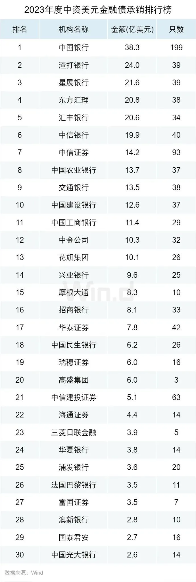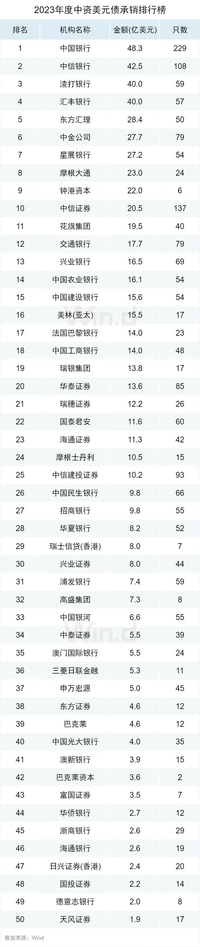 在中资美元债承销方面各家机构表现如何?2023年度中资美元债承销排行榜为您揭晓。