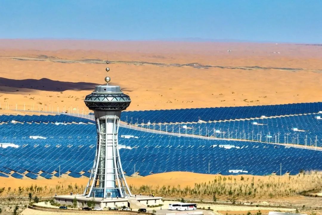 在宁夏中卫的腾格里沙漠新能源基地,220余万块光伏板在阳光下熠熠生辉,形成一片蓝色“光伏海”。近年来,宁夏中行持续加大对绿色信贷,尤其是光伏产业的支持力度,差异化制定产业项目信贷审批流程,支持宁夏打造新能源光伏治沙示范点,有效推动当地荒漠化治理和生态环境改善。