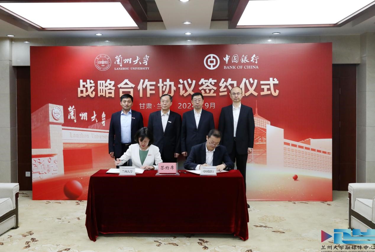 9月26日下午,兰州大学与中国银行战略合作框架协议签约仪式在城关校区举行。中国银行总行党委书记、董事长葛海蛟,总行党委委员、副行长蔡钊,甘肃分行党委书记、行长王峰,中国工程院院士、兰州大学校长杨勇平,副校长曹红出席签约仪式。