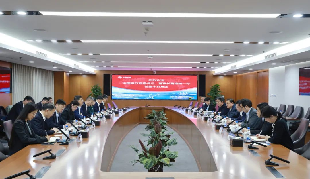 王彤宙对葛海蛟一行到访表示欢迎,对中国银行一直以来提供的优质金融服务表示感谢,并介绍了中交集团发展情况。他表示,中交集团正深入学习贯彻党的二十届三中全会精神,全面落实中央经济工作会议精神和中央企业负责人会议精神,充分发挥大交通、大城市、国际化、江河湖海业务领域的独特优势,加快建设具有全球竞争力的“三型”世界一流企业。中国银行是中国本外币兼营、业务品种齐全、实力雄厚的大型商业银行,也是中国全球化和综合化程度最高的银行。中交集团与中国银行的合作已覆盖双方各主要层级和市场领域,成为银企“总对总”合作的示范标杆。希望双方抢抓发展机遇,持续深化战略合作关系,共同携手为我国经济社会高质量发展贡献更大力量。
