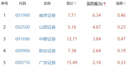 其中,南京证券、山西证券、中银证券、财达证券和广发证券位列板块涨幅榜前五位,涨幅分别为6.34%、4.67%、3.84%、2.64%和2.18%。