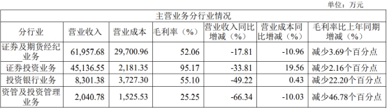 从主营业务分行业来看,2022年1-6月,南京证券证券及期货经纪业务、证券投资业务、投资银行业务、资管及投资管理业务营业收入全线下降。