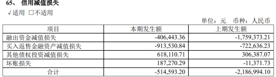 2022年1-6月,南京证券信用减值损失为-51.46万元,上年同期为-218.70万元。