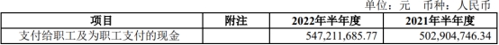 2022年1-6月,南京证券支付给职工及为职工支付的现金为5.47亿元,上年同期为5.03亿元。