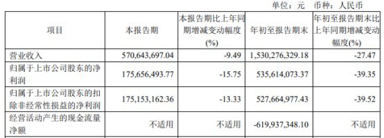 报告期内经营活动产生的现金流量净额为-619,937,348.10元,总资产50,971,046,010.29元。公司表示,业绩下滑,主要是受市场波动等因素影响,投资、经纪等业务收入同比有所减少所致。
