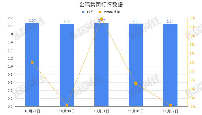 截至11月02日,金隅集团(601992.SH)股价收盘报2.06元,跌0.97%,总市值217.83亿元。