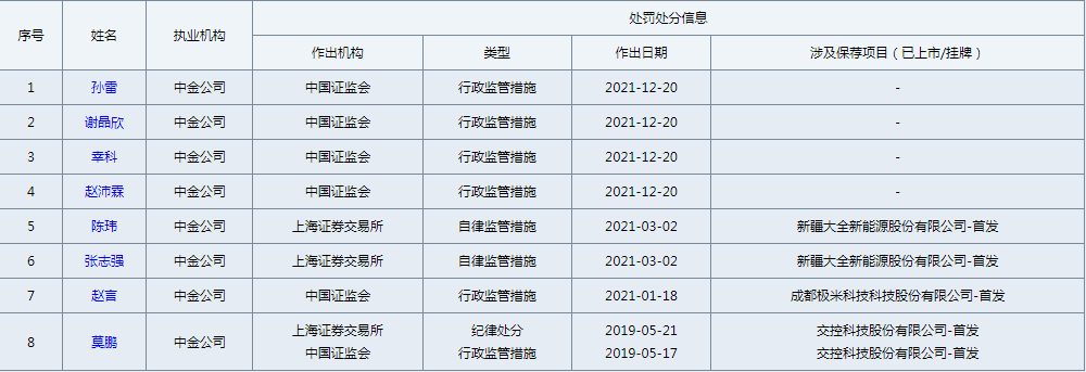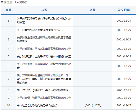 12月29日,改版后的证监会官网,首次集中发布涉及投行业务的罚单。来自七家券商的16名保荐代表人被采取行政监管措施,中金公司、万联证券和国金证券还被监管点名。