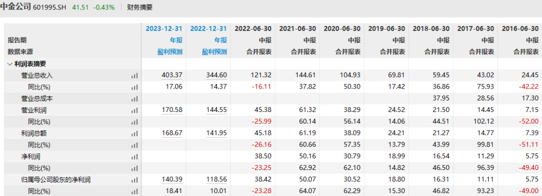 Wind数据显示,中金公司上一次中报业绩出现下滑,还是在2016年。