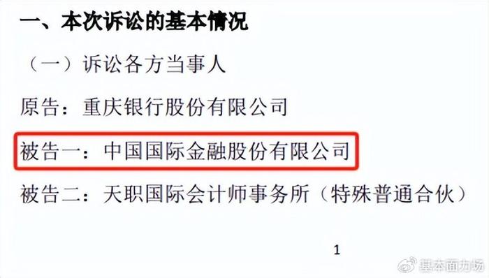 ¡¡¡¡È¥Äê12ÔÂÏÂÑ®ÖØÇìÒøÐз¢²¼ÁËÒ»·Ý¹«¸æ£¬Ïò³ÉÓå½ðÈÚ·¨ÔºÌáÆðËßËÏ£¬ÇëÇóÅÐÁî°üÀ¨Öнð¹«Ë¾ÔÚÄڵĶà¼ÒÖнé»ú¹¹£¬Á¬Í¬²¿·Ö×ÔÈ»ÈË£¬¶ÔÖØÇì°®ÆÕµØ²ú£¨¼¯ÍÅ£©ÓÐÏÞ¹«Ë¾£¨¼ò³Æ¡°ÖØÇì°®ÆÕ¹«Ë¾¡±£©Õ®È¯·¢ÐÐÅû¶ÎļþÖÐÐé¼Ù³ÂÊöµ¼Öµı¾ÐÐËðʧ³Ðµ£Á¬´øÅâ³¥ÔðÈΡ£ÆäÖУ¬×÷Ϊµ±Ê±ÖØÇì°®ÆÕ¹«Ë¾Õ®È¯·¢ÐвÆÎñ¹ËÎʼ°Ö÷³ÐÏúÉ̵ÄÖнð¹«Ë¾£¬³ÉΪ±¾´ÎËßËϵĵÚÒ»±»¸æ¡£