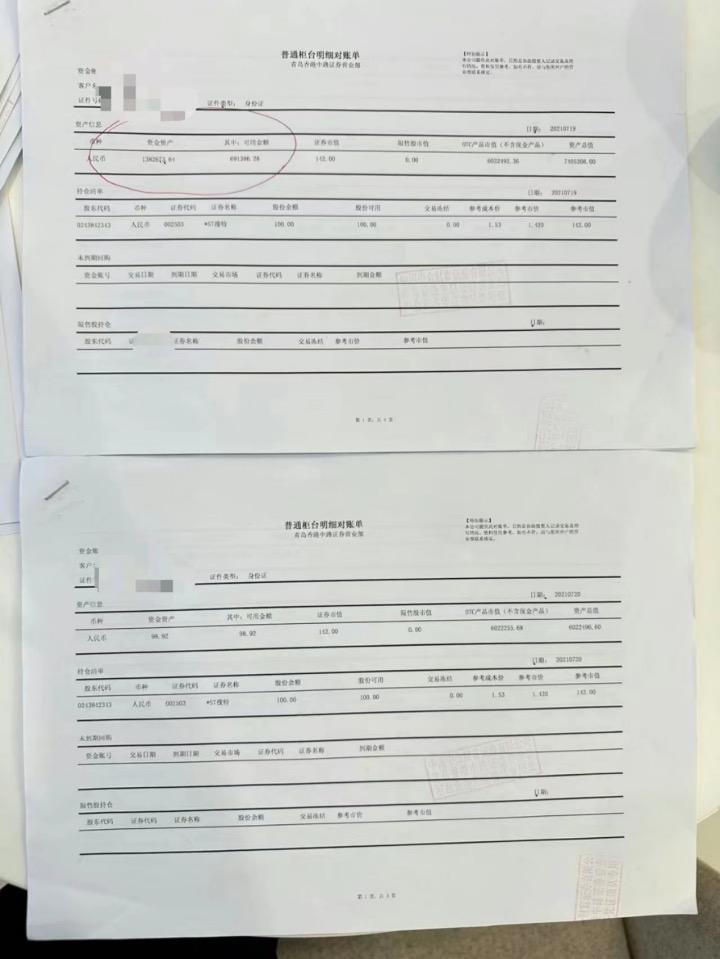 举例来看,在投资人提供的对账单中,2021年7月19日,其资产总值为740.53万元,但次日,即7月20日,资产总值变为602.25万元。“其中近140万元被盗走,至今未回到账户”,其表示,“本人拿到的2021年9月至今的对账单与本人的手机软件显示不符,也有众多盗窃资金情况,而且有些账面明细与总市值不符,本人不认可对账单的真实性。”
