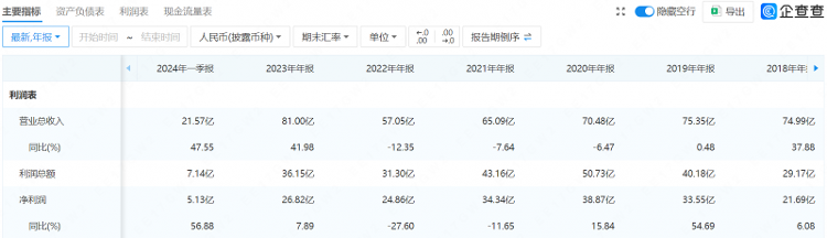 信息显示,海尔金盈成立于2014年,是海尔集团的成员企业,主要从事投资活动等。其中,该公司注册资本高达117.37亿元,且全部为实缴资本。2023年,海尔金盈实现营收81亿元,净利润26.82亿元;2024年第一季度,实现营收21.57亿元,净利润5.13亿元。从营收来看,海尔金盈的业绩十分稳定。