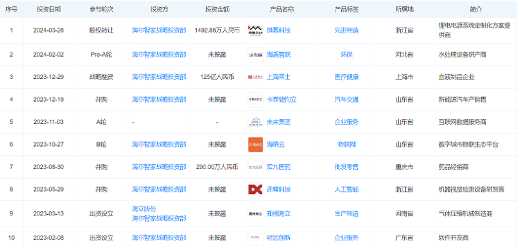 记者发现,海尔金盈作为一家金融公司,投资的步伐从未停止。数据显示,自2023年以来,海尔金盈共有10个投资事件,其中3件为并购。其中最引人注目的,当属今年6月收购上海莱士成为该公司实控人一事。