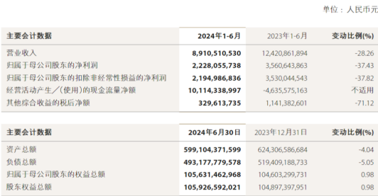 2024年上半年,中金公司的业绩出现了大幅下降。报告期内,该公司实现营业收入89亿元,同比下降28.26%;同期归属于母公司的扣非前和扣非后22.3亿元和21.9亿元,同比分别下降37.43%和37.82%。