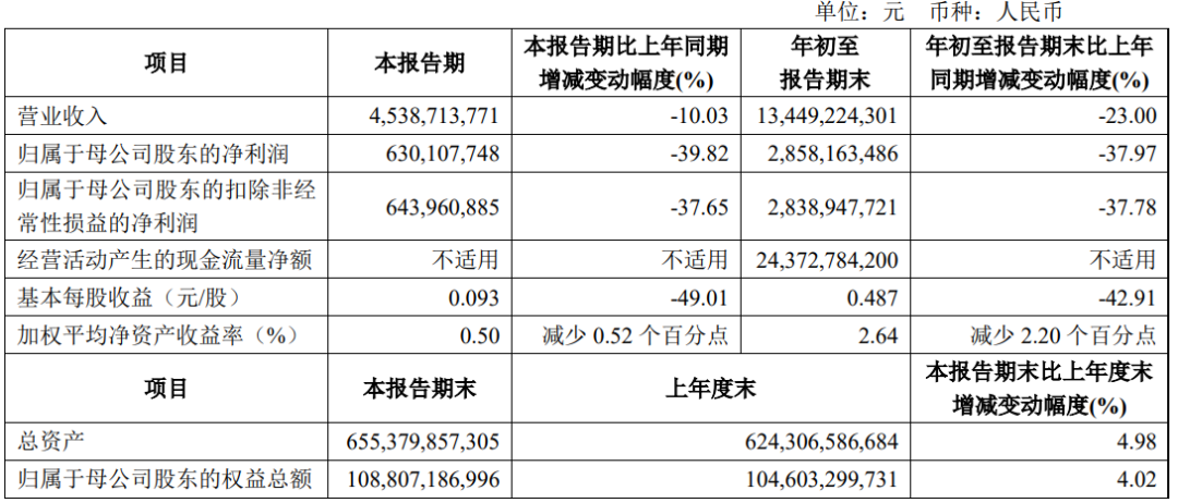 根据中金公司10月30日晚间发布的2024年三季报,该公司今年第三季度营业收入同比下降10.03%,归母净利润同比下降39.82%。整个前三季度亦是营收、归母净利润双降,同比降幅分别为23%、37.97%。
