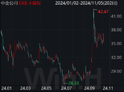 截至11月5日收盘,中金公司A股股价自9月24日市场行情启动以来上涨28.91%,自年初以来下跌2.2%,与A股上市券商同期股价表现相比,均处于尾部位置。