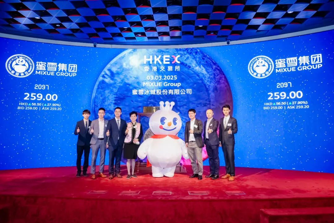 3月3日,蜜雪冰城股份有限公司(以下简称“蜜雪冰城”,股票代码:2097.HK)正式在香港联交所主板挂牌上市,绿鞋前发行规模约34.5亿港元,绿鞋后发行规模约39.7亿港元(假设绿鞋全额行使)。中金公司担任本次项目的整体协调人、联席全球协调人、联席账簿管理人、联席牵头经办人。