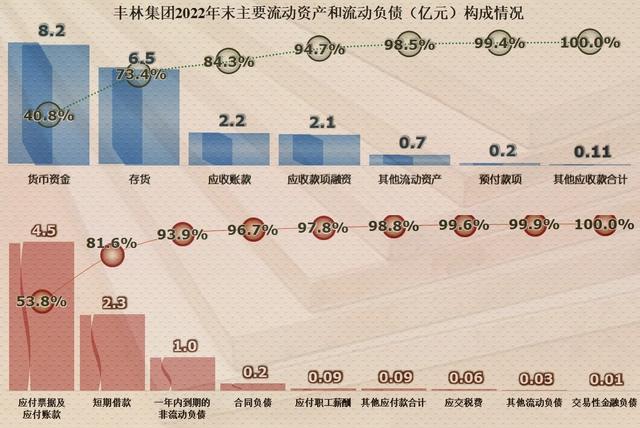 第一大流动资产就是货币资金,达到了8.2亿元,与流动负债的规模接近,然后金额较大的还有存货和应收账款等,其流动资产的质量较高。流动负债的主要项目是应付票据及应付账款4.5亿元,然后还有两项短期有息负债,合计达到了3.3亿元。