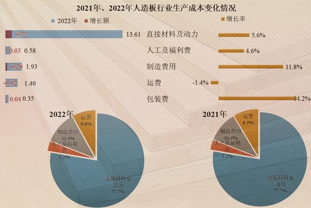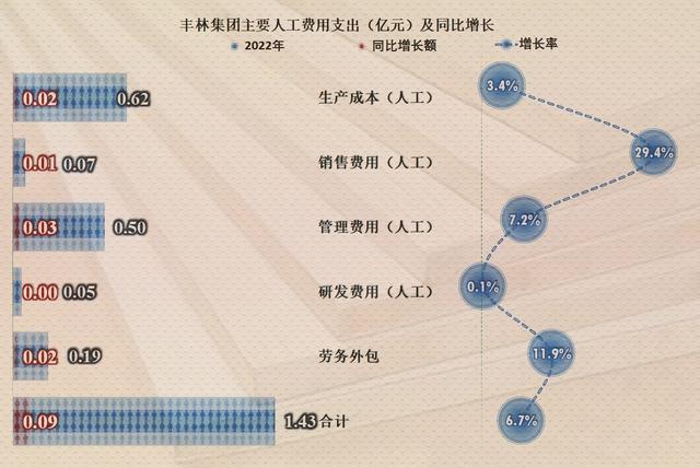 我们前面已经说过,丰林集团人造板的产量上升了6.9%,其生产成本总体上升5.8%,略低于产量的增长。分类构成中,制造费用和包装费的增长超过产量增长;材料、动力和人工费低于营收增长,运费有所下降。应该说,他们的成本控制还是努力了的,主要还是受到市场的影响。