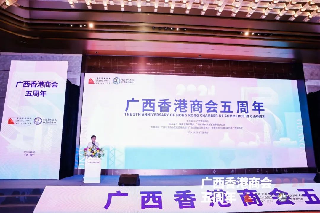 6月6日,由香港贸易发展局与广西香港商会携手主办的“新质生产力赋能桂港高质量发展”论坛暨广西香港商会五周年庆典活动在南宁盛大举行。来自广西和香港两地共20余家政府机构、商协会及企业的350名领导嘉宾和业界精英齐聚一堂。丰林集团副董事长刘念作为广西香港商会副会长,应邀出席了盛会,共同见证这一时刻。