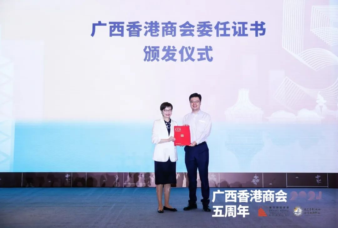 庆典上,林郑月娥为刘念颁发了广西香港商会副会长委任证书,以及广西香港商会青年创业服务中心顾问委任书。