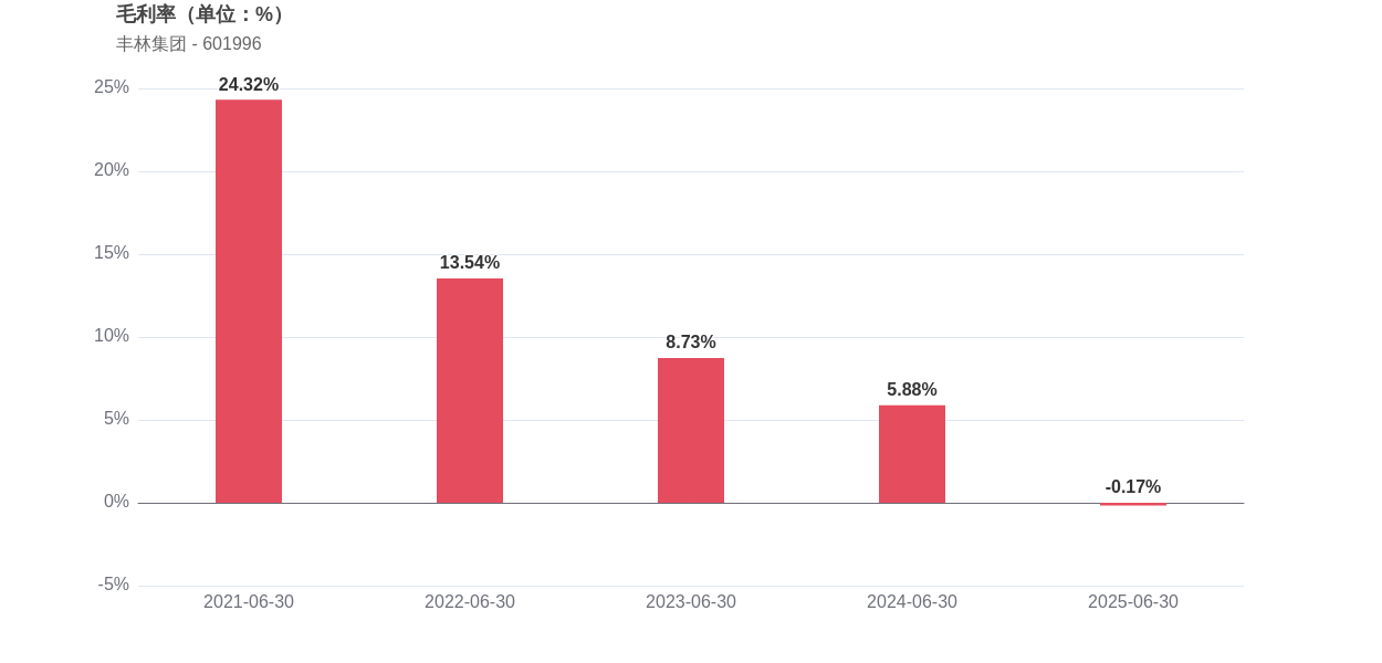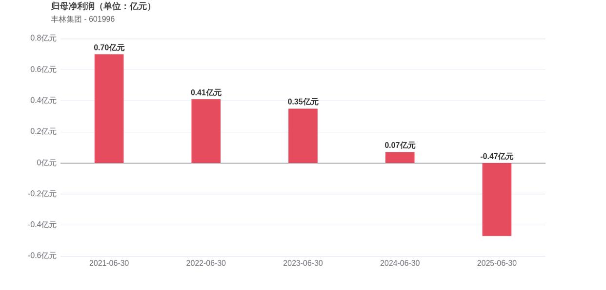 在2025年上半年,丰林集团的经营业绩承压明显,实现营业收入7.83亿元,同比下滑19.0%,归母净利润亏损0.47亿元,同比下滑763.61%。