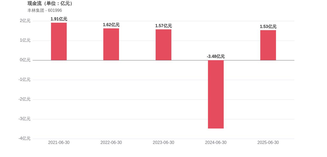 在经营稳健性方面,丰林集团面临存货周转效率下降的挑战,存货周转天数为154.68天,较2024年上半年增长了7.83%,表明库存积压情况有所加重。经营活动产生的现金流净额为1.53亿元,相比2024年同期的-3.48亿元,实现了由负转正。此外,2025年上半年的资产负债率为26.67%,同比增长了6.62个百分点,这意味着公司债务水平有所提升。