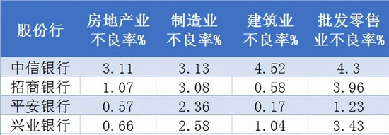 但资产质量持续向好的表象下,该行制造业、批发零售业、房地产业、建筑业等重点领域不良率较高的问题仍然存在。横向对比来看,截至6月末,该行贷款主要投向的行业中,房地产业、制造业、建筑业、批发零售业的不良率在已披露中报的股份行中均处于较高位。其中,房地产业3.11%的不良率和建筑业4.52%的不良率与其他股份行相比高得较为明显。