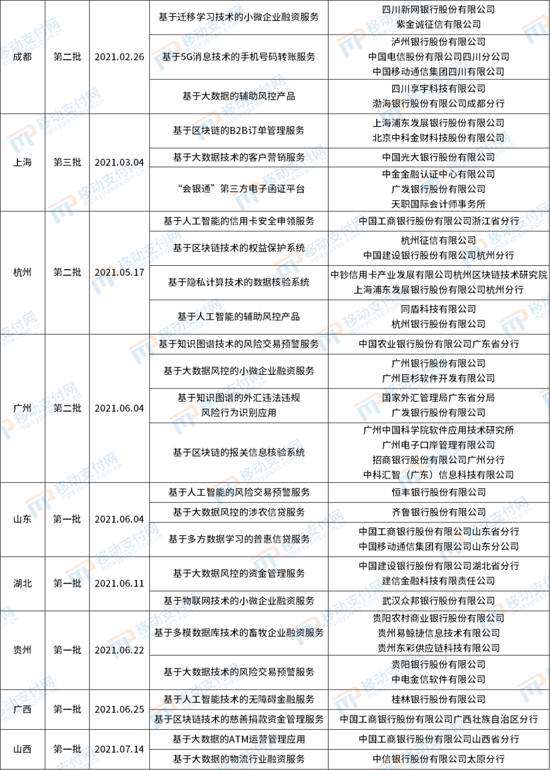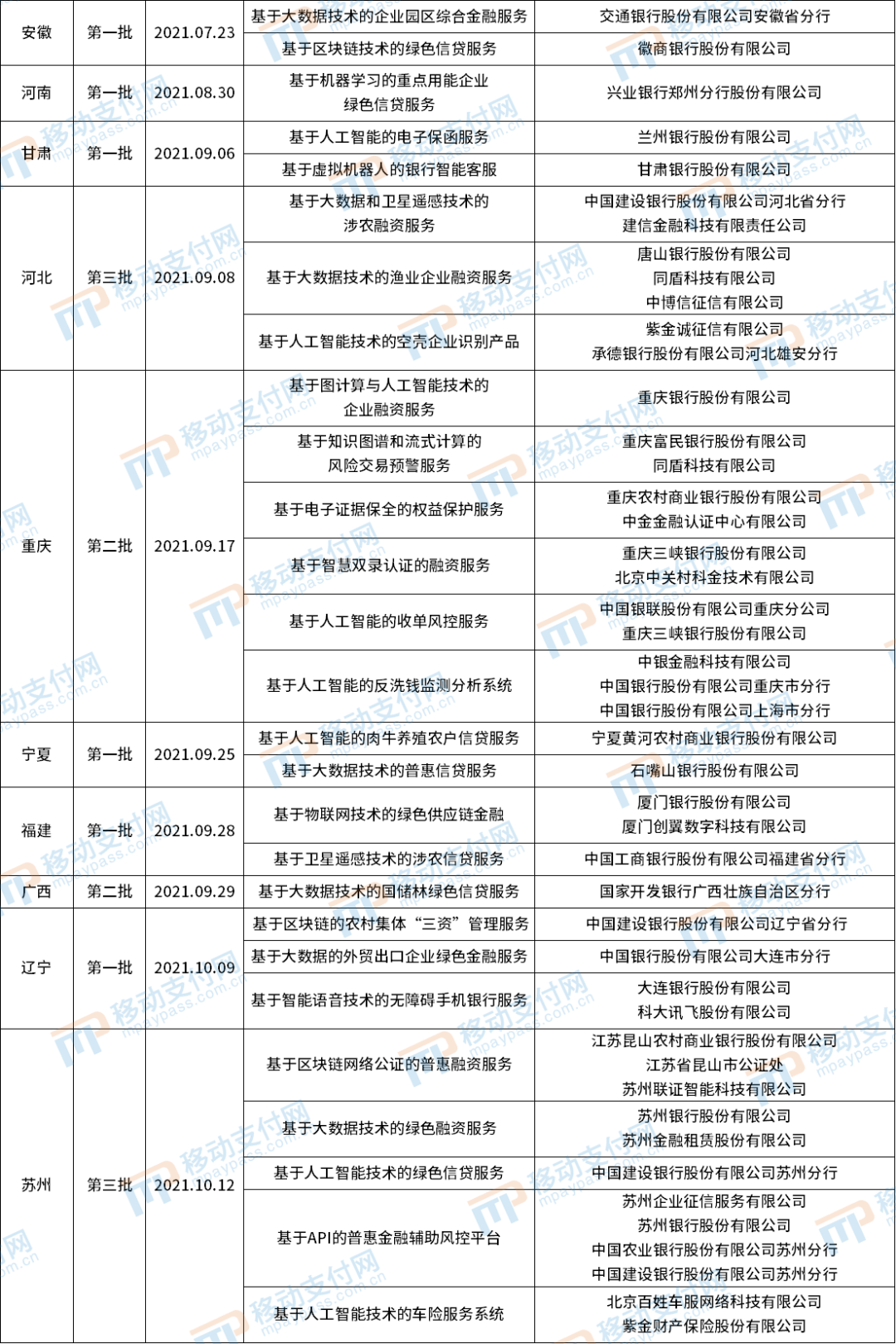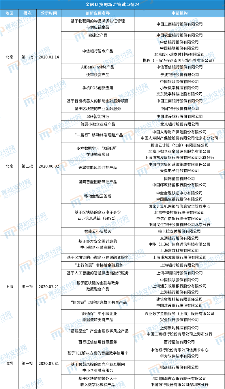 目前,在多个金融科技创新监管试点地区,共有161个金融科技创新应用对外公示,其中,152个申请机构包含银行,银行参与度94.41%。