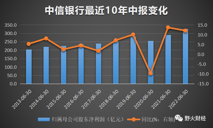 【中报速读】大型股份制银行如平安银行、招商银行等陆续发布2022年度中报,净利润都是两位数增长,中信银行表现如何呢?