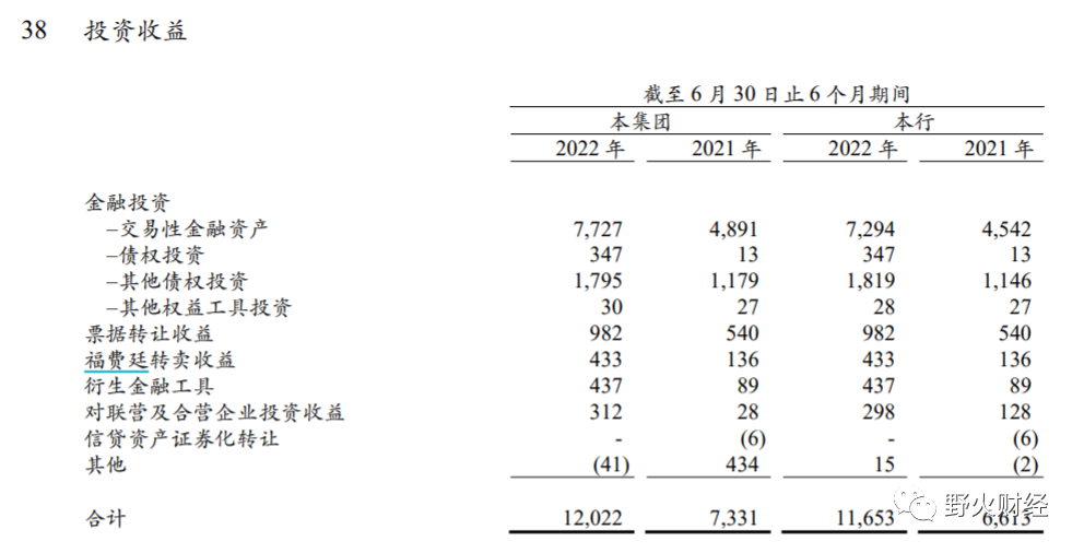 投资收益中其他项,如债权投资、票据转让收益、福费廷转卖收益、衍生金融工具、对联营及合营企业投资收益等均有不同程度的增加。