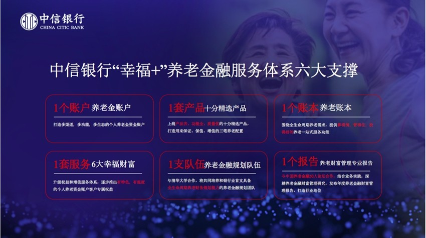 中信银行关注养老金融的现实需求,深刻理解养老财富管理转型趋势,升级了“幸福+”养老金融服务体系。