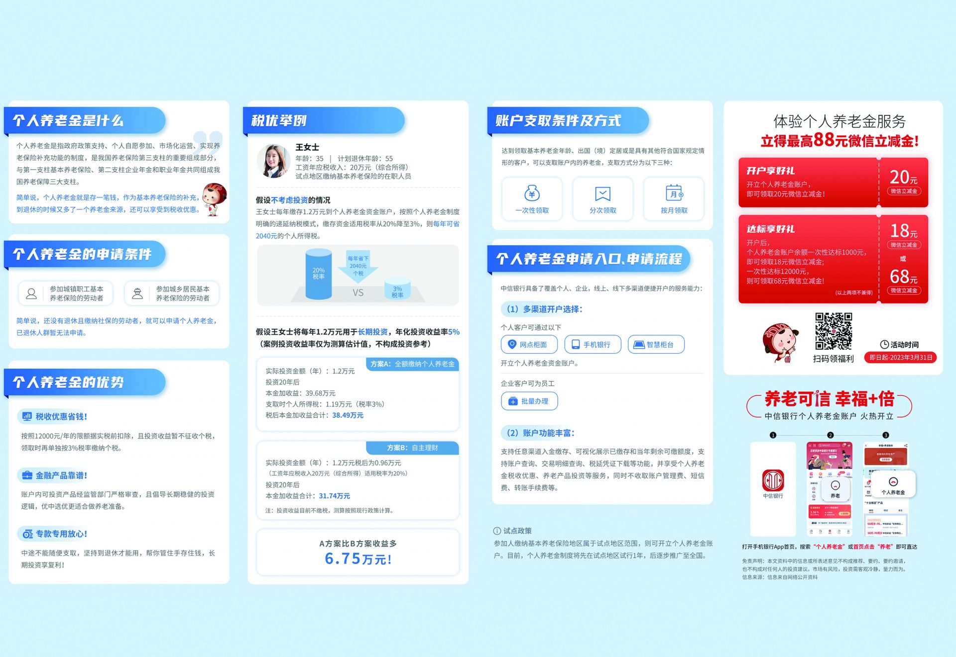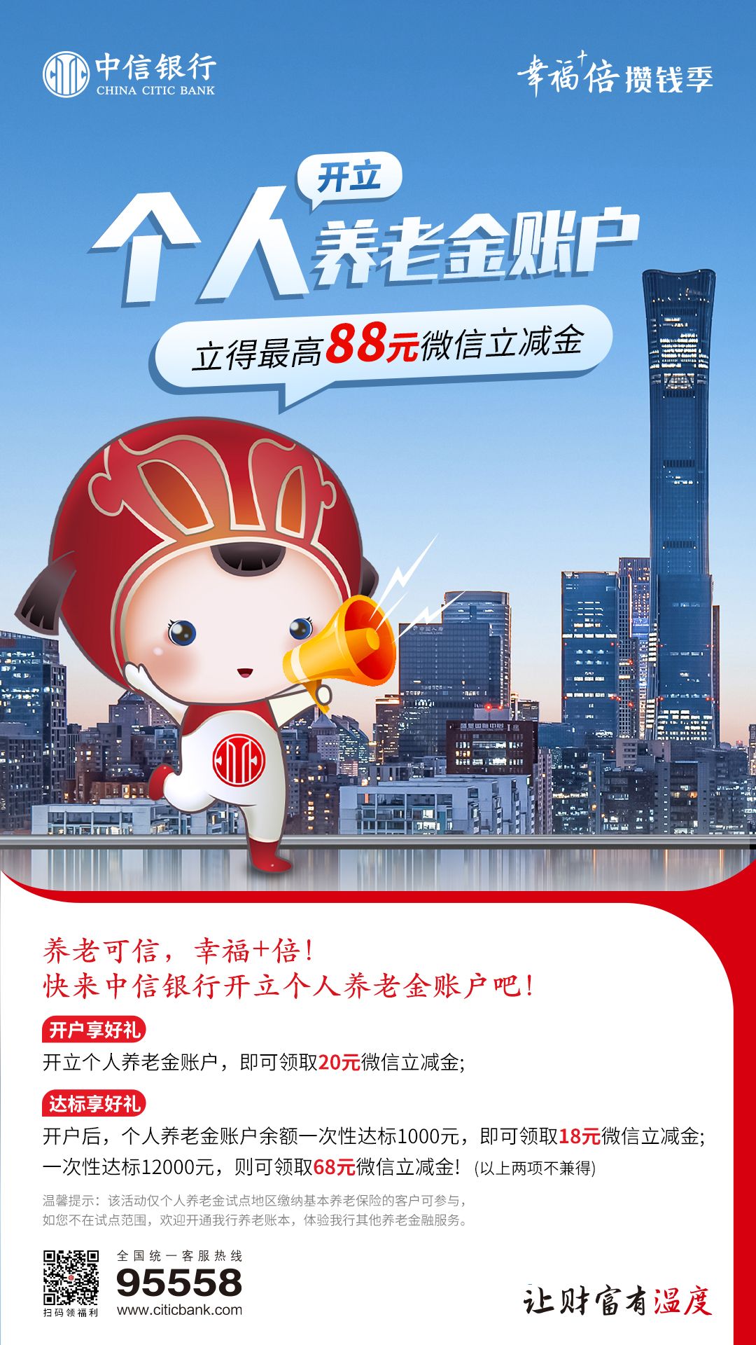 11月18日,银保监会公布了符合条件的商业银行和理财公司的名单。中信银行成为首批具备个人养老金开办资格的银行、首批具备个人养老金投资基金代销资质的银行。11月25日起,客户可通过中信银行合肥分行线上、线下渠道开户办理相关业务。