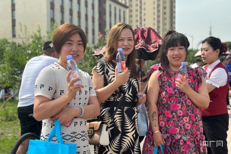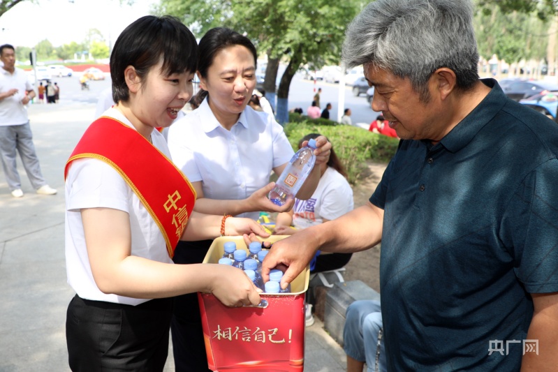 中信银行哈尔滨分行道里支行工作人员为考生家长送上矿泉水(央广网发徐旭摄)