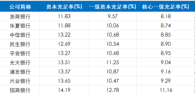 此外,中信银行的资本充足率虽然有所改善,但在9家上市股份行中,仍然处于落后阶段。