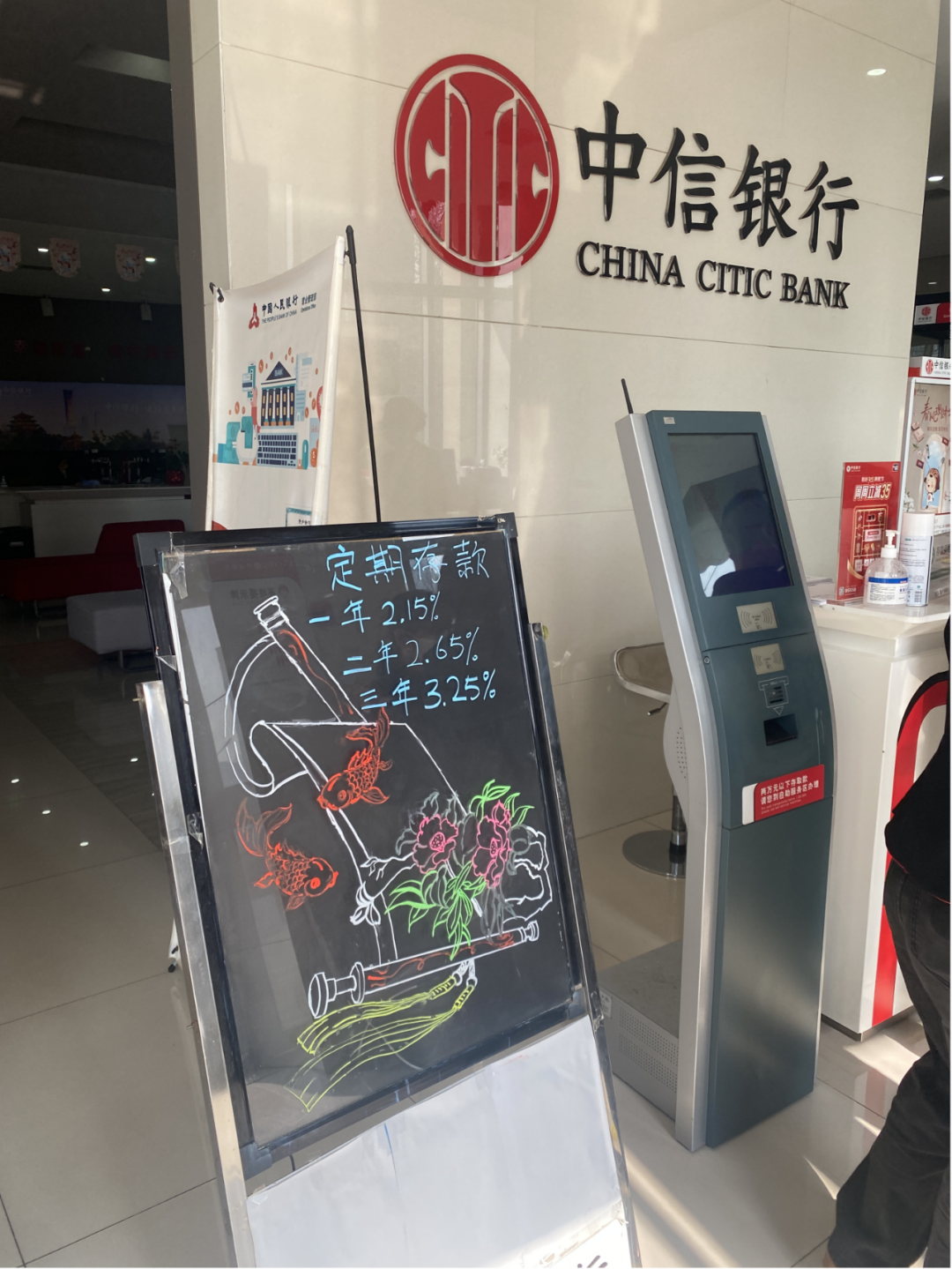 以北京为例,当地中信银行网点打出定存利率1年2.15%、2年2.65%、3年3.25%的黑板报吸引储户。在中信银行APP上,这一利率以“专享”二字特别标示。据中信银行北京某支行工作人员表示,该专享实际针对在中信银行开立的所有账户。