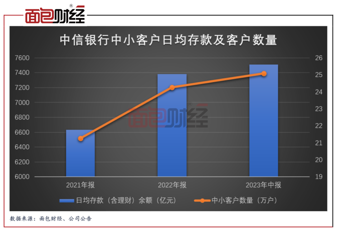 不仅是普惠型小微企业贷款保持较快增长,中信银行的中小企业客户数量和存款额也实现了持续增长。根据2023年半年报数据,截至2023年6月末,中信银行的中小客户达25.10万户,较上年末增长0.82万户。报告期内,日均存款(含理财)余额7511亿元,较上年度增长129.94亿元。