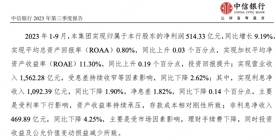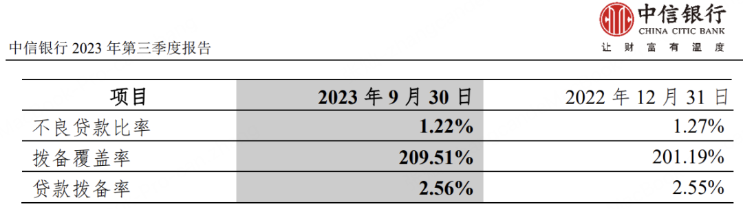 图片来源:中信银行2023年三季报