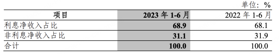 根据其去年半年报数据,截至去年上半年,中信银行利息净收入占比68.9%,非利息净收入占比31.1%。