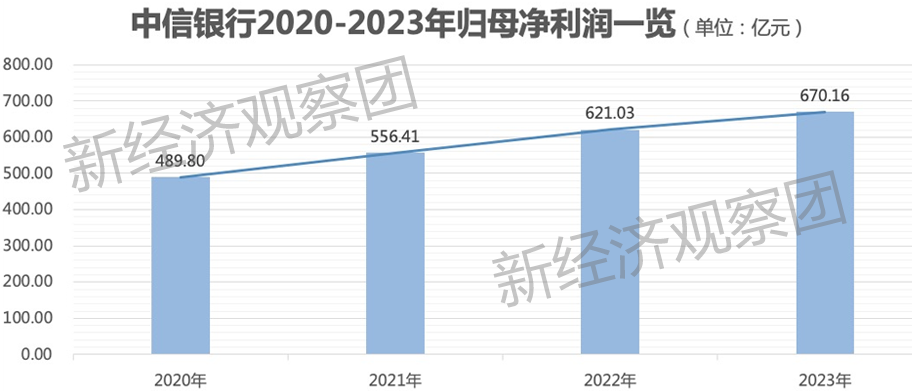 不过令人欣慰的是,2023年,中信银行的净利润仍然有所增长。年报显示,报告期内,中信银行实现归母净利润670.16亿元,相比2022年增长7.91%。
