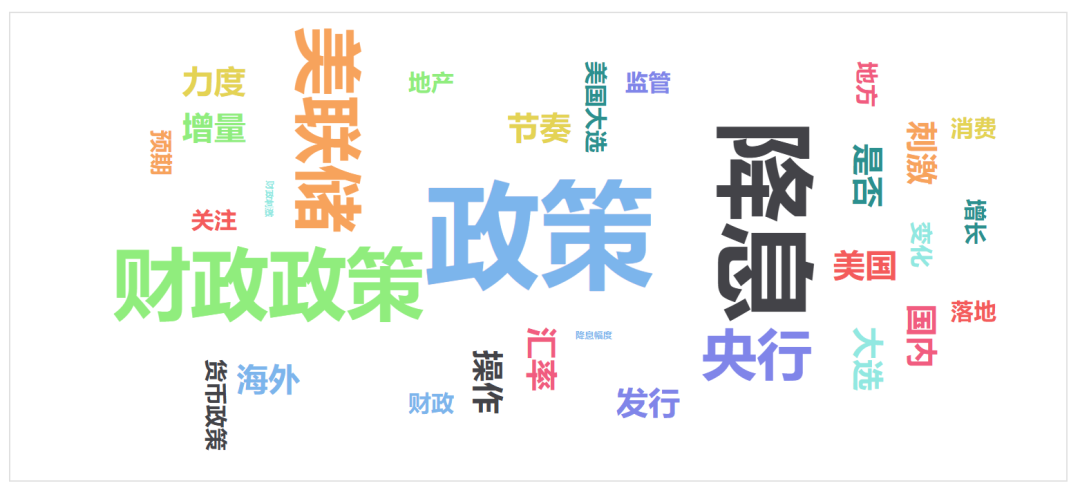 【影响债市的重要宏观因素】:词频显示,基金经理们普遍非常关注财政政策、美联储降息节奏及央行操作情况。