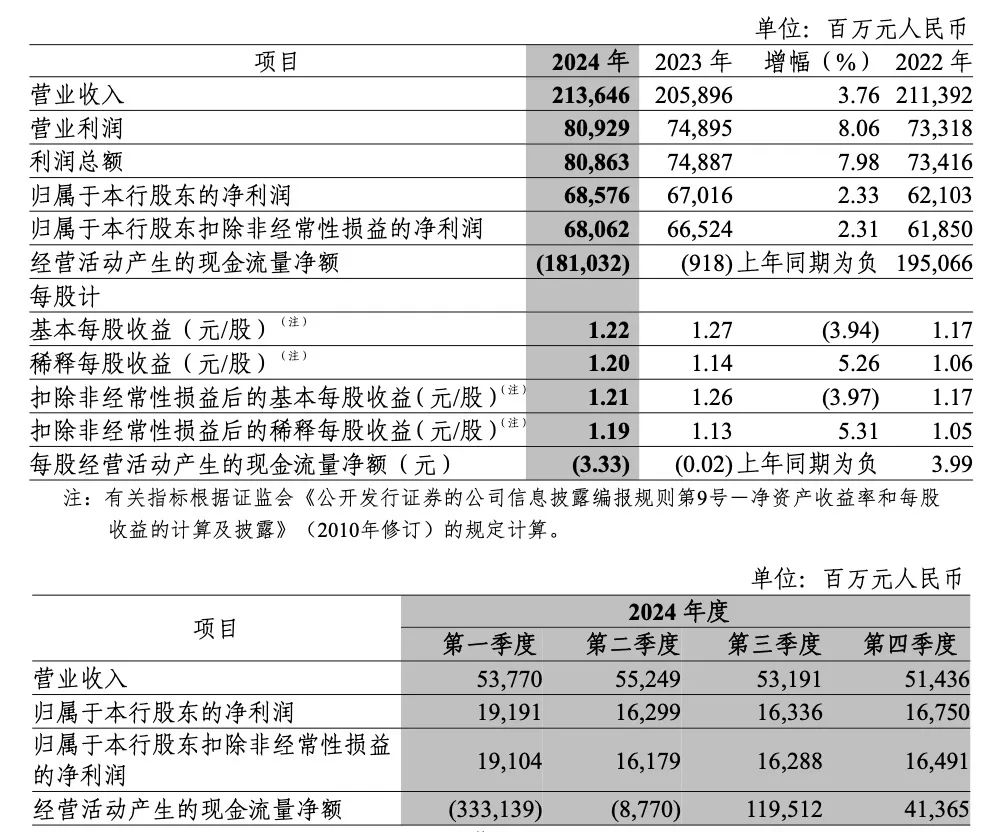 现金流方面,呈现出较大变化。经营活动产生的现金净流出为1810.32亿元,而上一年同期仅为9.18亿元,主要是偿还中央银行借款及同业往来流出增加。投资活动产生的现金净流出为295.32亿元,上年同期为净流入18.87亿元,主要是投资及出售兑付规模扩大导致整体现金净流出。筹资活动产生的现金净流入为2208.03亿元,上年同期为净流出631.02亿元,主要是同业存单和债务证券的发行及偿还规模增加,使得整体呈现现金净流入状态。