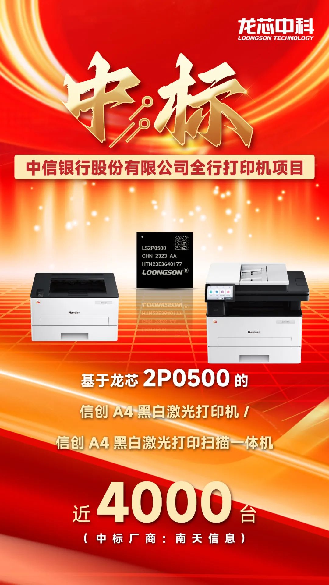 近4000台!龙芯路线打印机中标中信银行全行项目