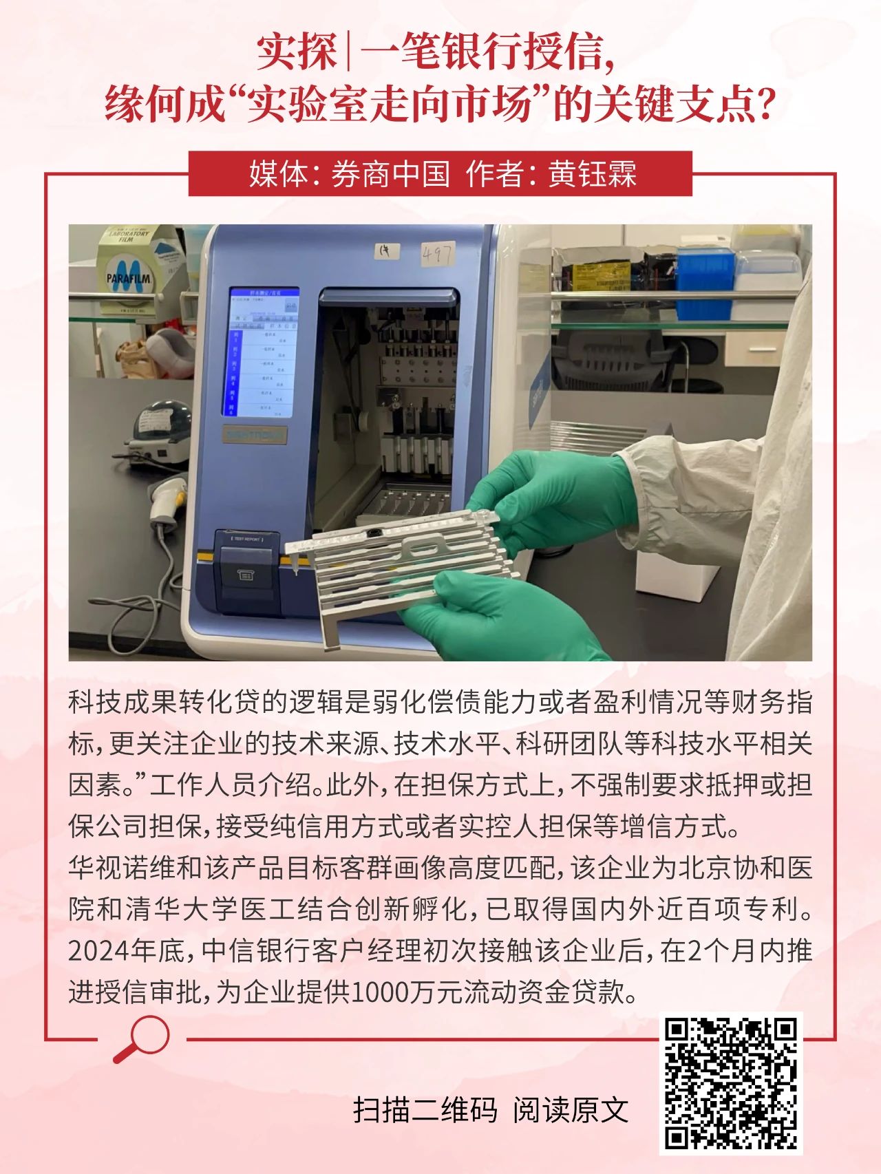 北京华视诺维医疗科技有限公司,是一家致力于眼科精准诊疗技术研发的创新企业,手握60余项专利却因缺乏营收深陷融资困境。中信银行通过“科技成果转化贷”为其量身开放1000万元授信额度,以专利质押为核心增信手段,打通实验室到产业化的“最后一公里”。2024年,中信银行联合北京协和医学院打造“金融赋能医学成果转化”平台,树立“协和研发+银行赋能”的标杆案例,为产学研融合注入金融“活水”。