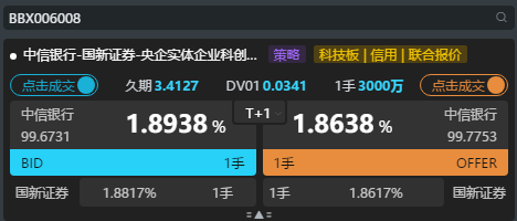 国新证券作为央企券商,始终围绕“立足国有资本运营公司服务国资央企改革大局”这一中心任务,强化央企券商责任担当,积极履行央企券商责任,充分发挥国资央企和资本市场的桥梁纽带作用。国新证券联合中信银行可有效发挥双方协同优势,持续提供银行间市场科创债高质效的报价、交易服务,将整体价差维持在约3BP左右。