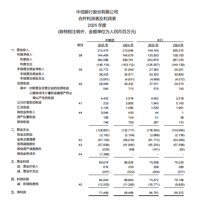 这一点也能从集团与母行关系里得到印证。中信银行2025年度报告显示,截至报告期末,中信银行在境内外共有8家附属机构。集团层面的平稳,不只是母行单独完成的结果,也与附属机构共同贡献有关。从年报数据看,集团层面的增长与母行报表表现存在差异,附属机构经营表现亦对集团业绩形成支撑。