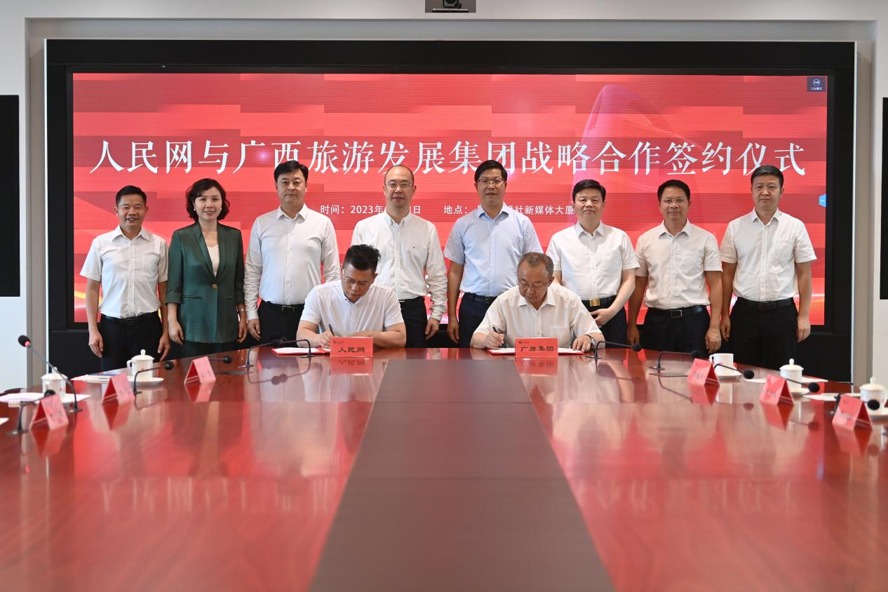 6月12日下午,广西旅游发展集团与人民网在北京签署战略合作协议。双方将携手打造“二十四芳”项目,助力广西在边疆民族地区高质量发展上勇闯新路。