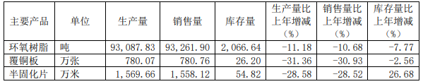 原材料采购情况,环氧树脂原料双酚A采购量为4.9万吨,环氧氯丙烷3.6万吨,四溴双酚A采购0.89万吨。