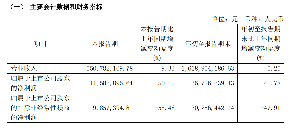 今年1-9月,宏昌电子共实现营业收入16.19亿元,同比减少5.65%;归母净利润3672万元,同比减少40.78%,扣非后归母净利润3026万元,同比减少47.91%。